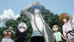 Palm và Killua đoàn tụ với Ikalgo. Ông hỏi Killua liệu họ sẽ giúp ta chống Pitou Gon, Killua nhưng ghi chú rằng họ sẽ không đủ. Họ tập hợp lại với Meleoron và Knuckle, và Knuckle là van lơn vào việc giúp Gòn. Cả nhóm trở về cung điện.